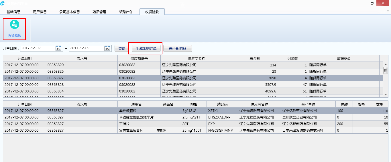 收貨驗(yàn)收:收貨員可以通過(guò)平臺(tái)將供應(yīng)商的隨貨通行單引入到采購(gòu)商的ERP軟件,減少了收貨員及驗(yàn)收員錄入藥品數(shù)量、批號(hào)、效期的工作量。